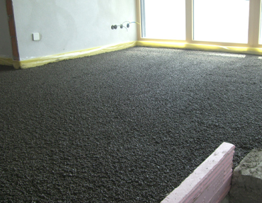 Leichter Ausgleichs- und Dämmunterbau aus Styroporbeton zur Höhenregulierung. Verbessert Wärme- und Trittschalldämmung im Gebäude.