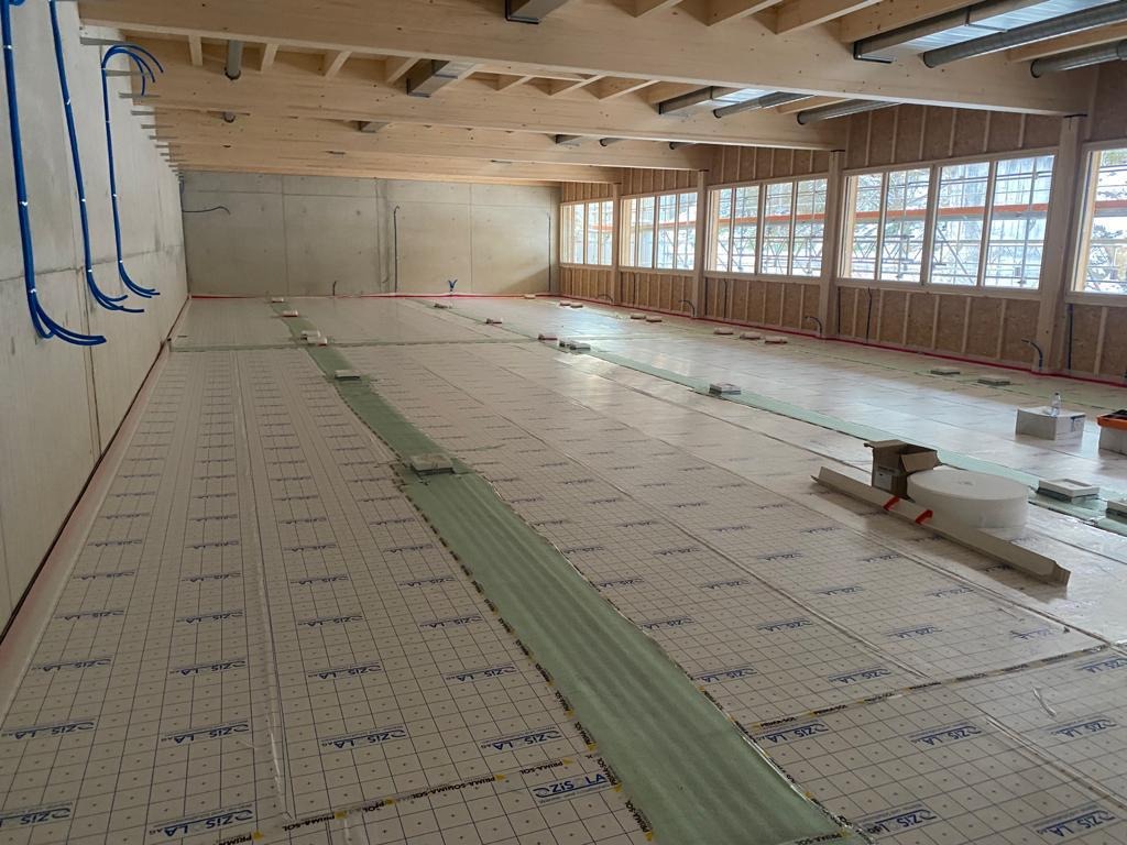 Einbau von Anhydrit-Estrichen mit glatter Oberfläche und hoher Maßgenauigkeit. Ideal für Fußbodenheizungen und große Flächen.